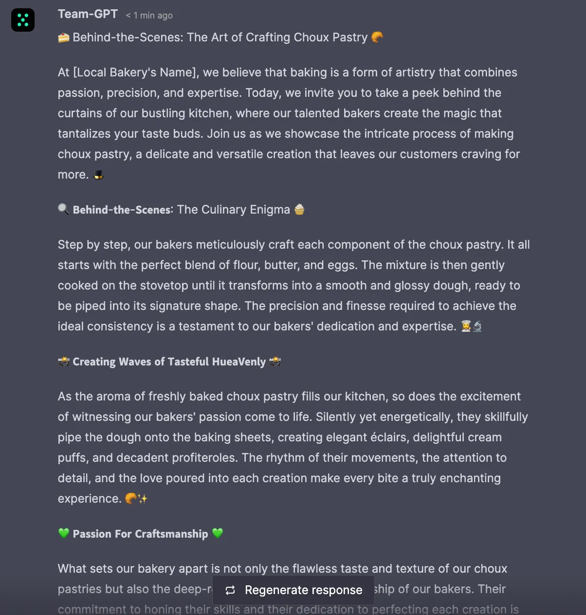 Besides, use ChatGPT to brainstorm ideas for your next BTS content. It can generate exciting ideas – from employee spotlights to process explanations.
