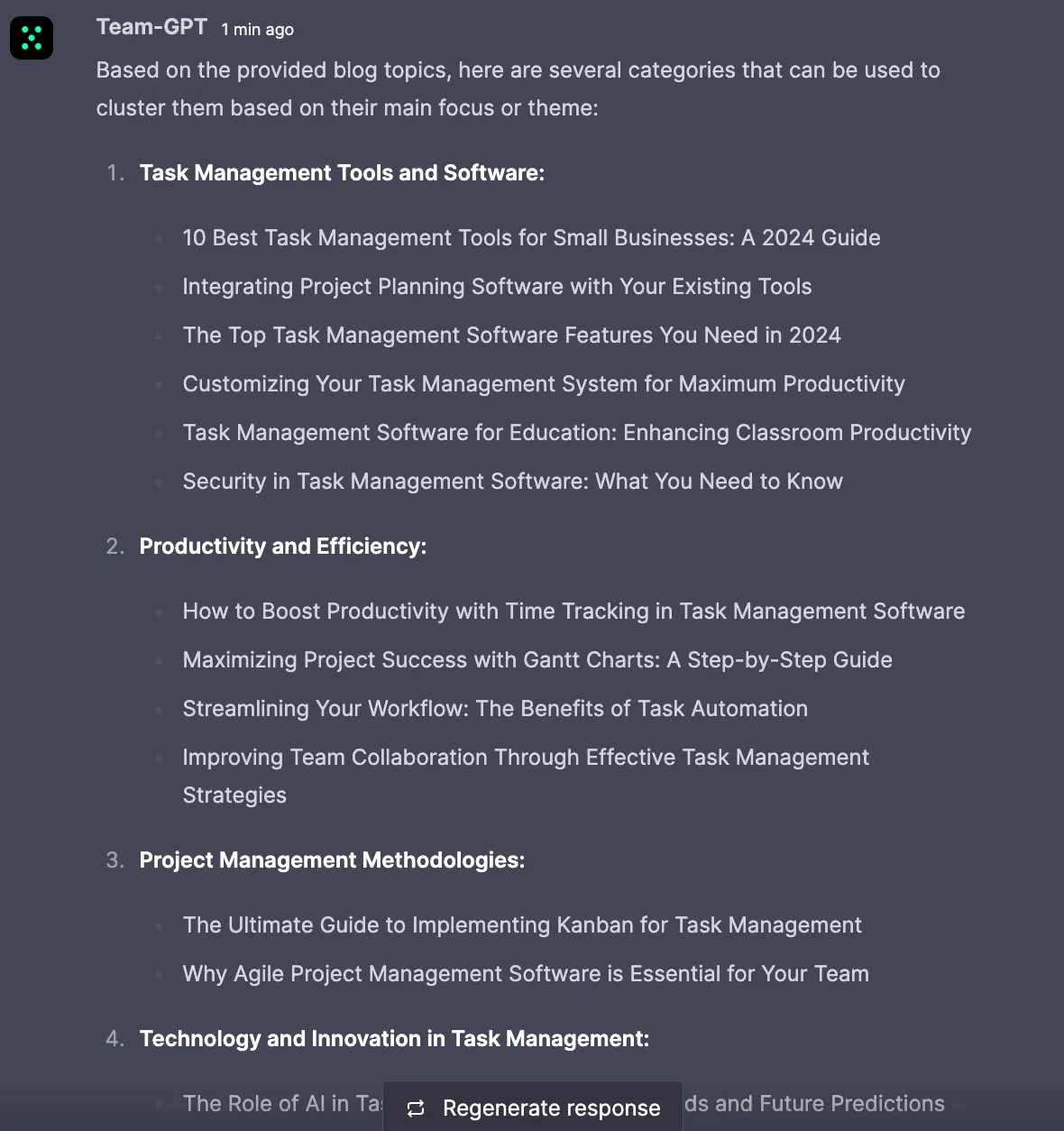 With Team-GPT, you can onboard your team on our platform and use ChatGPT as a team to devise an AI-assisted SEO strategy that can help you grow your brand’s visibility.