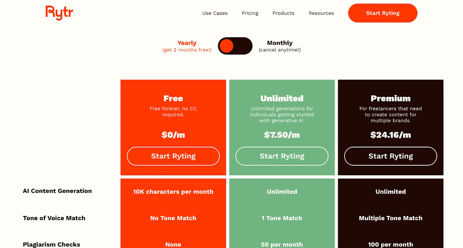 Rytr offers three pricing plans, making it accessible whether you’re just starting or need unlimited content generation: