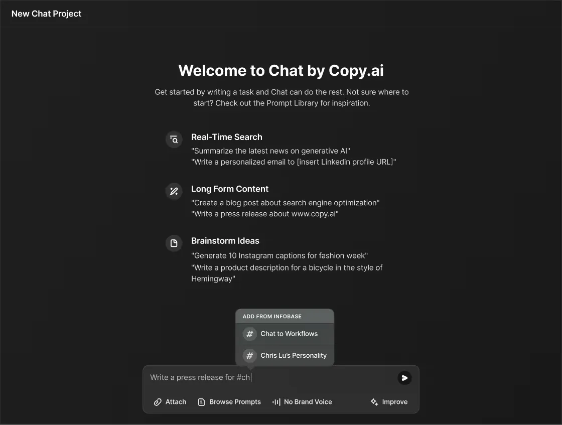 To give you an idea of how you can use Copy.ai for marketing operations, here are some practical use cases: