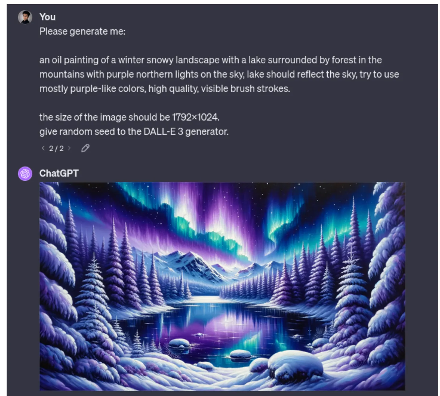 Prompt 1: An oil painting of a winter snowy landscape…high quality, visible brush strokes.