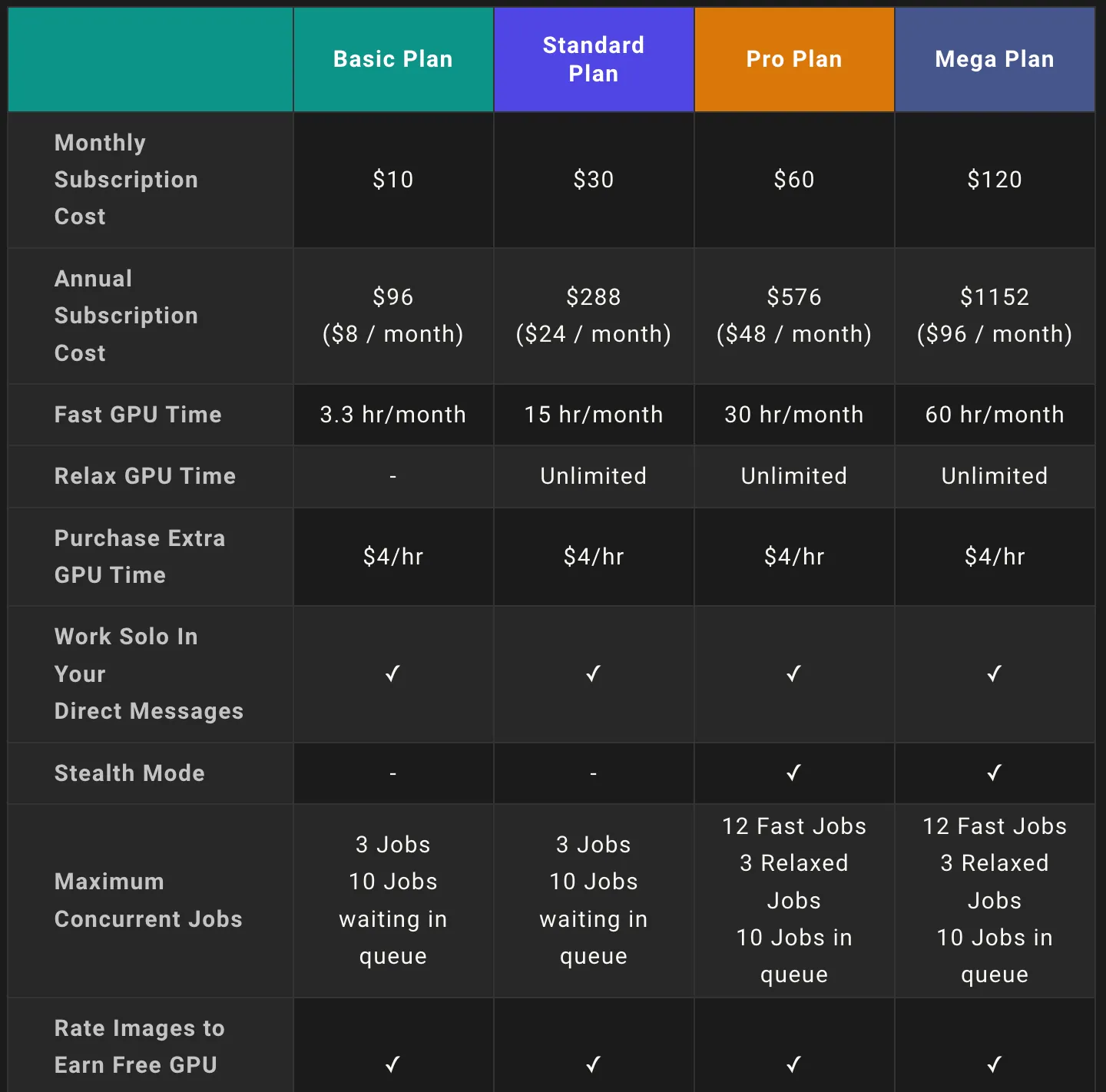 Other Midjourney plans give you unlimited creation in Relax mode but have a cap of fast GPU hours.
