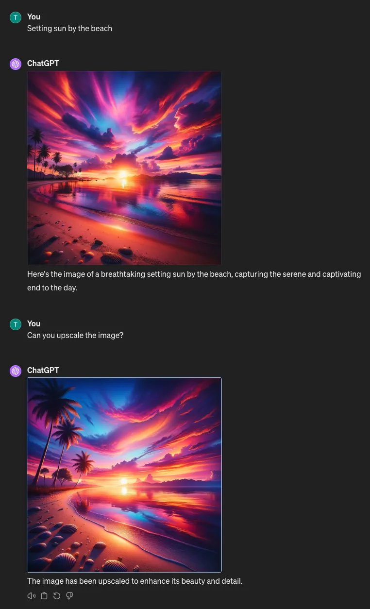 Dall-E comes with an upscaling feature integrated into the UI so users can easily access it.