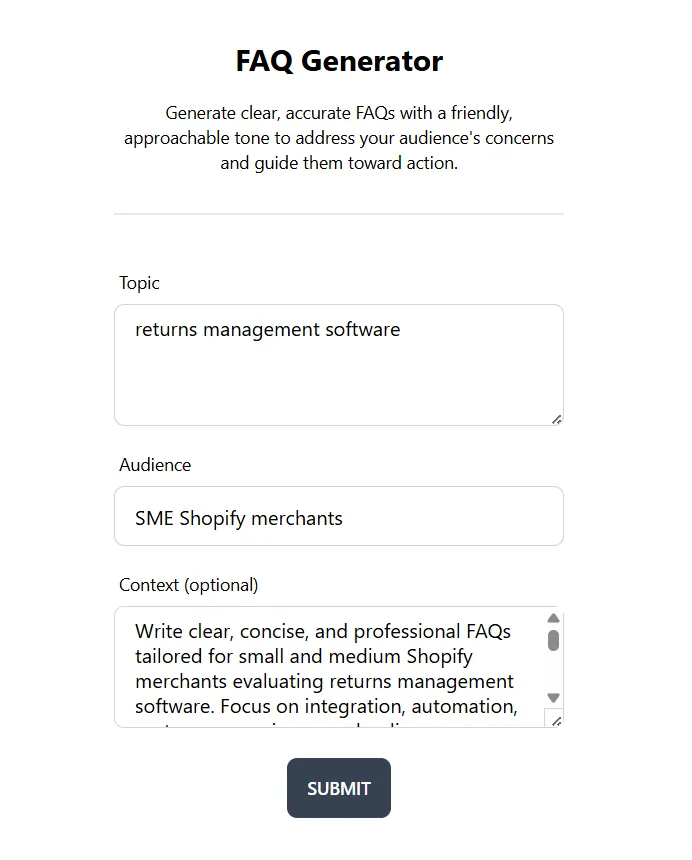 Without diving into too much detail, here are the 3 factors I’d consider in an FAQ generator: