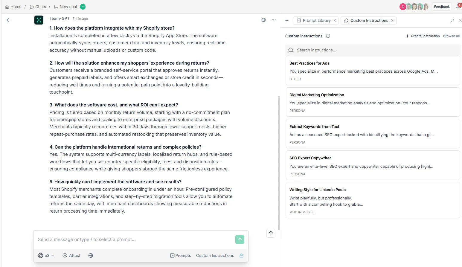 Here’s how you can generate on-brand FAQs with Team-GPT alongside your team: