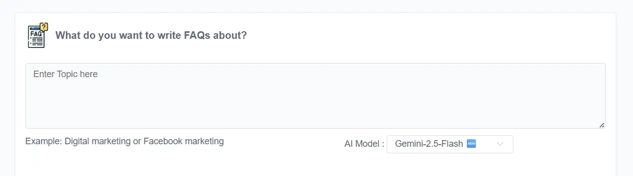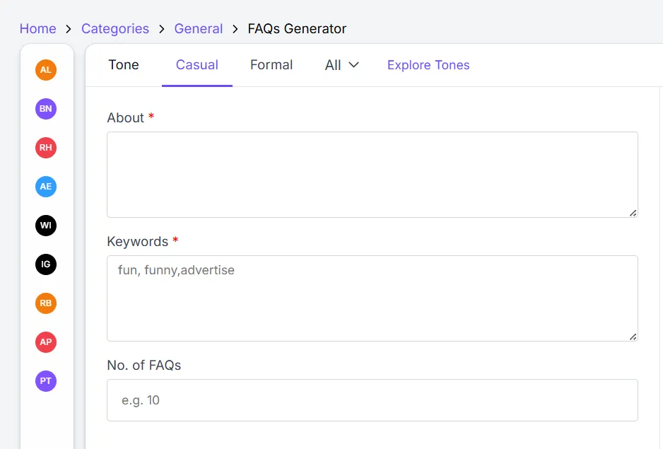 Originality AI offers an FAQ generator that features a few forms, where you can select: