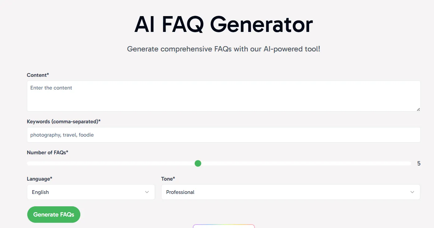 ✅ Straight to the point FAQ generator that provides descriptive answers.