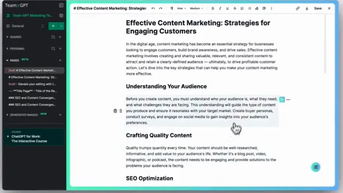 With Team-GPT, for instance, you can have the entire team work on editing and tweaking AI-generated content on the spot.