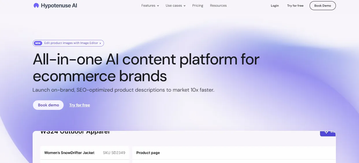 Hypotenuse.ai is a designated e-commerce AI writer and writing assistant that helps you create content optimized to generate more leads and conversions.