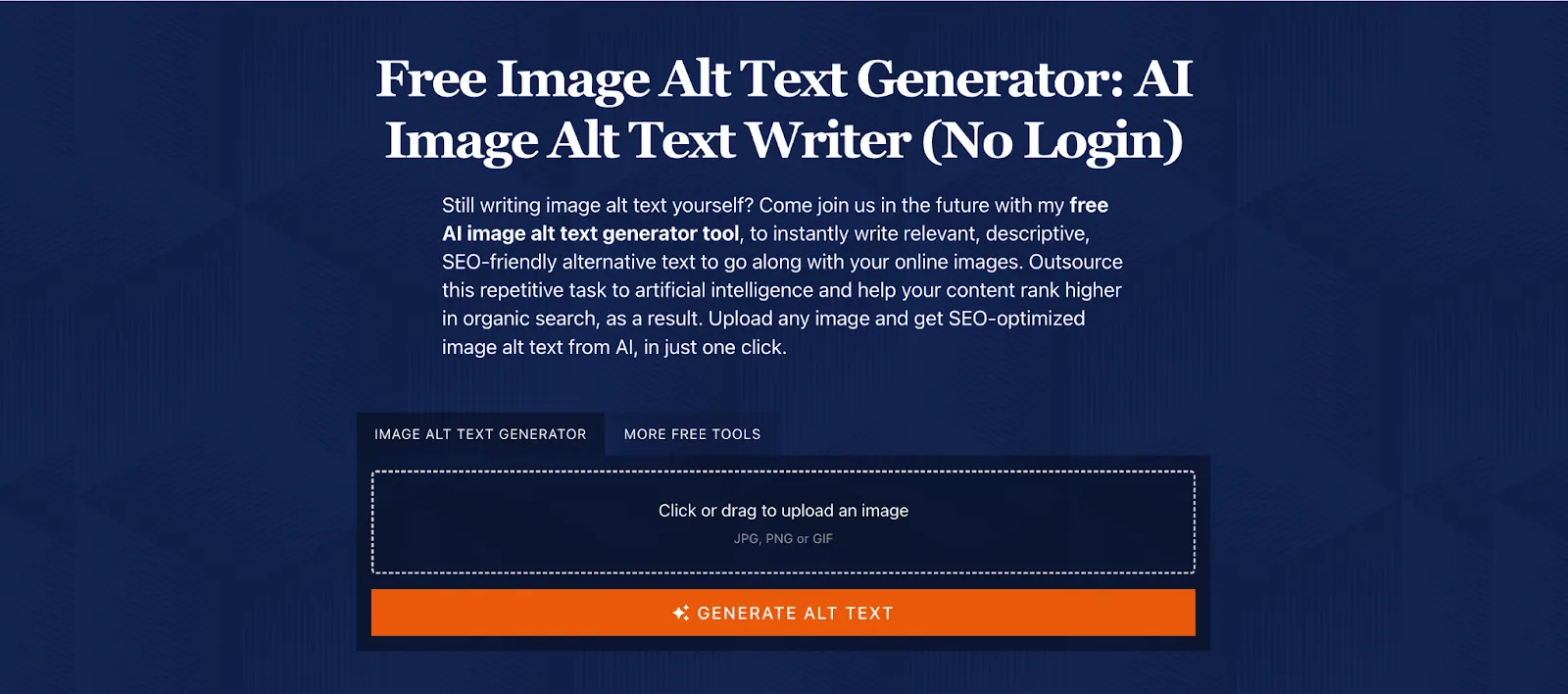 It’s built to support anyone managing a blog, e-commerce site, or knowledge base with frequent visual content. While it’s a no-frills tool, it’s fast, reliable, and removes the manual work from writing alt text line by line.