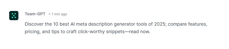 Let’s try generating a meta description for this Team-GPT blog: “10 Best Meta Description Generators in 2025.”