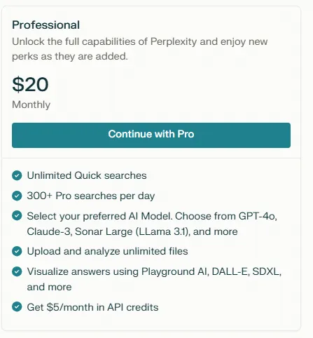 - $5 Monthly API Credit: Access open-source and custom Perplexity AI models for personal projects.