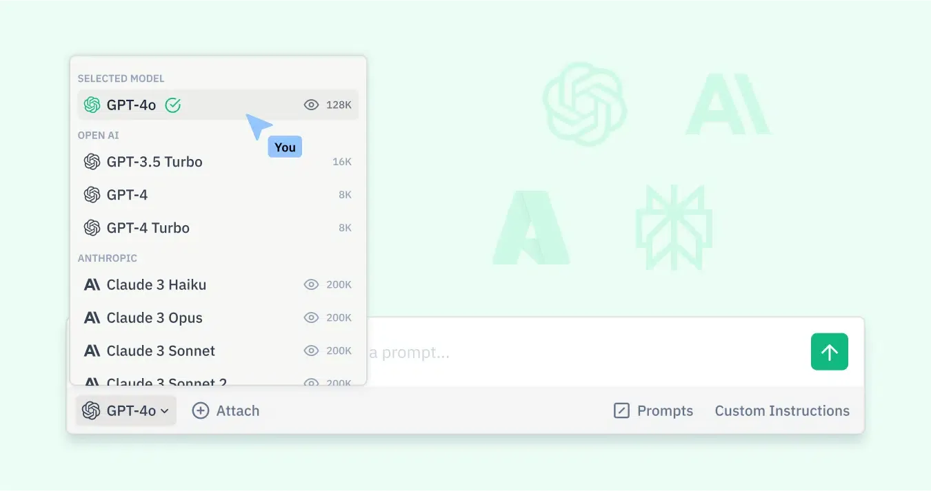 Our tool lets you use and customize AI models like ChatGPT, Gemini, Claude, LLaMA, and Perplexity in a secure environment.