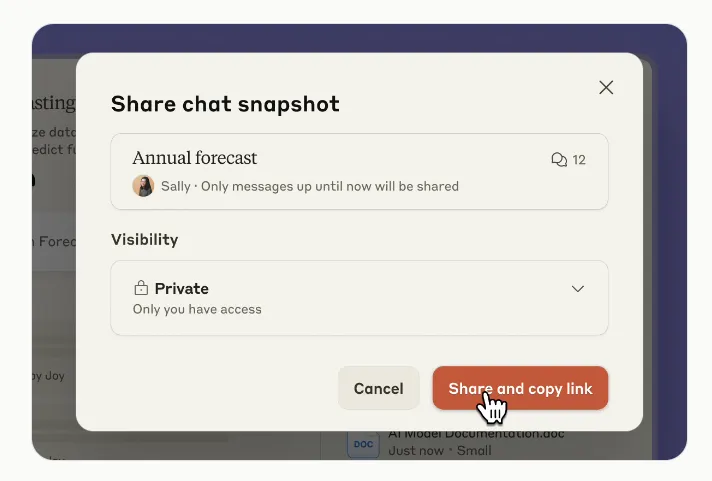 - Sharing chats with colleagues and working on a piece of content together.