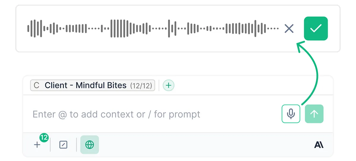 Hit the microphone button in the chat input and start speaking - your words will turn into a text prompt automatically.