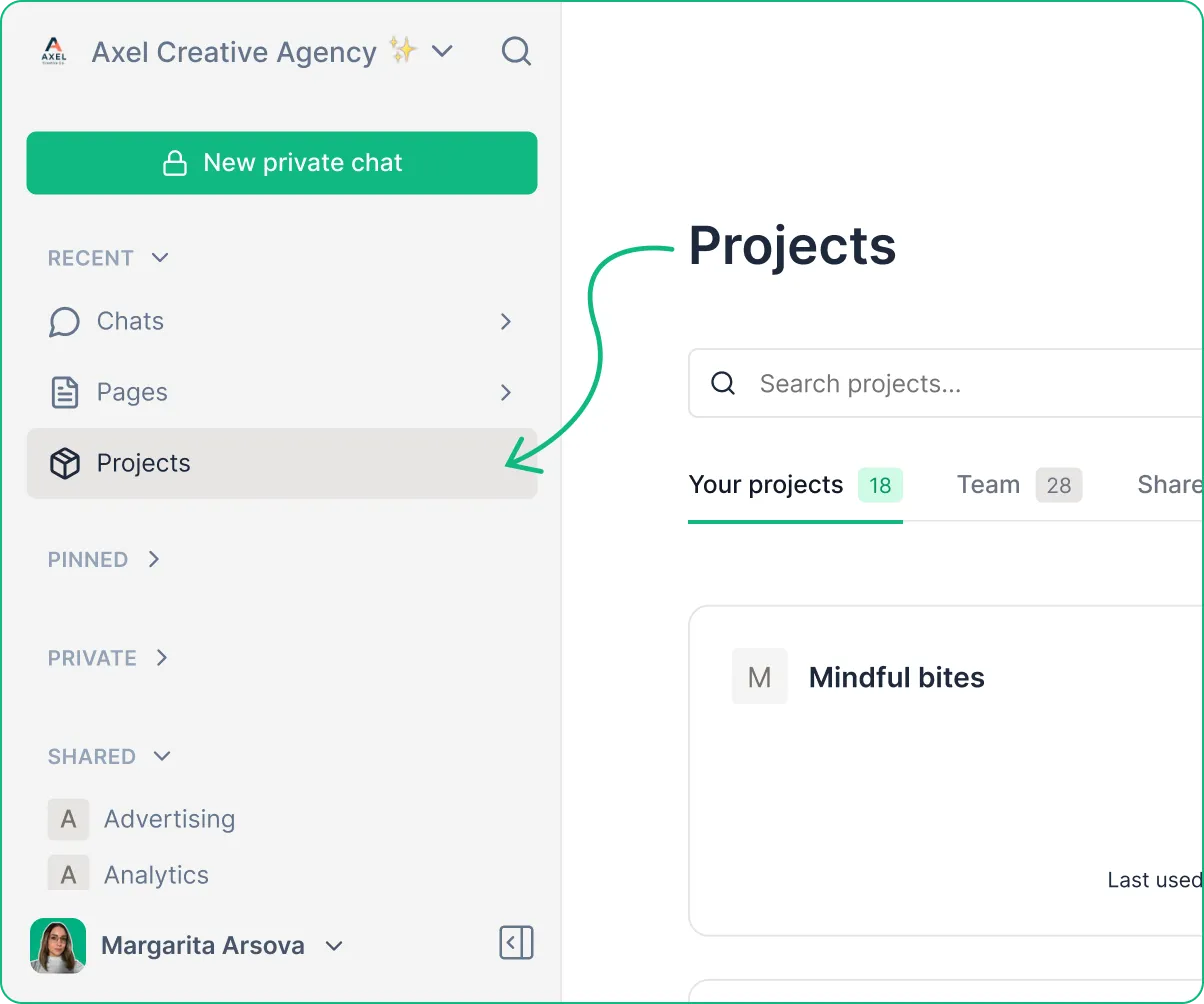 - Team projects (shared with everyone)
