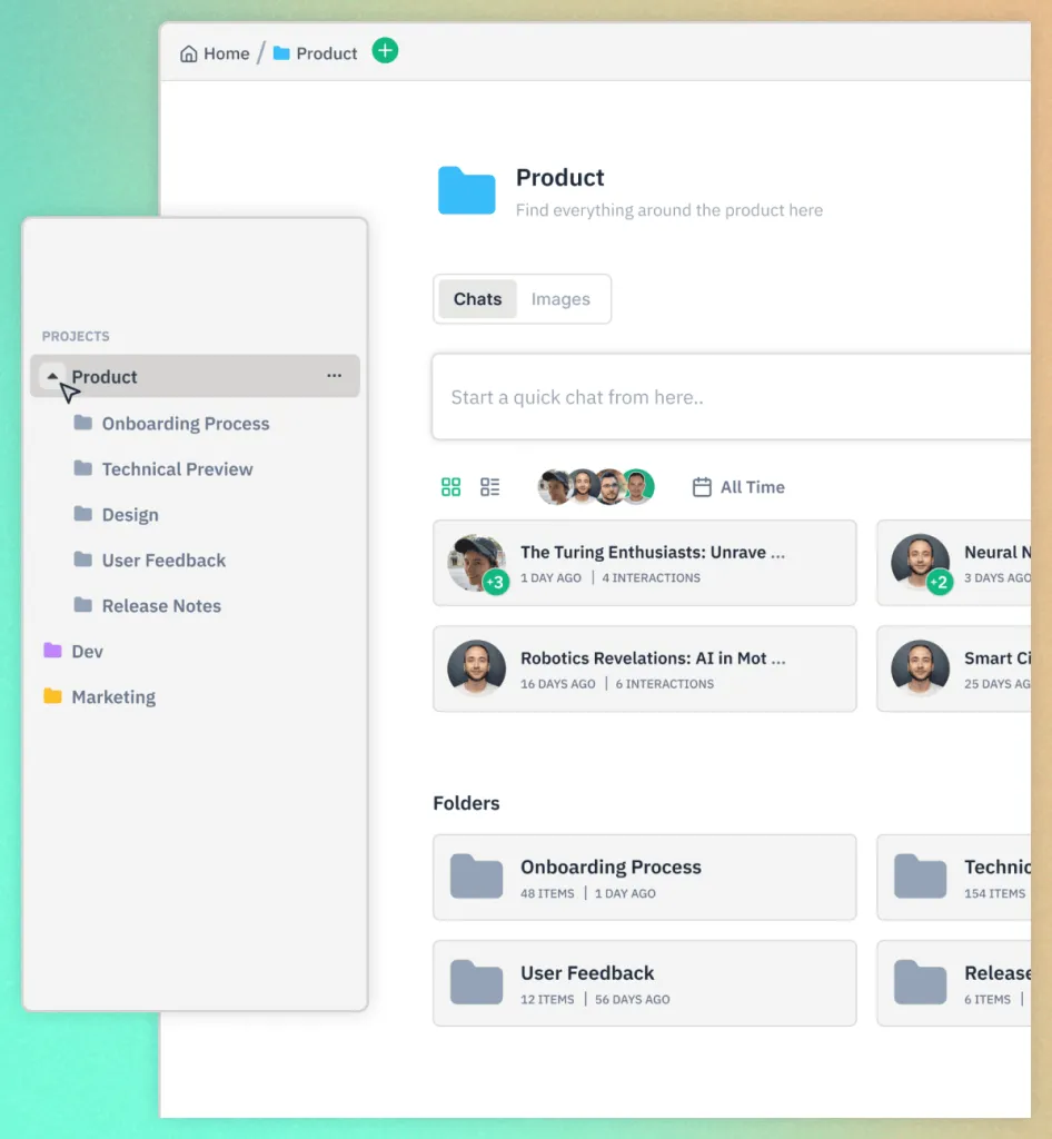 Your top-level folders are now called Projects. Simply click on any Project to explore its contents in the main area — no more crowded sidebar! - Dedicated Space for the Quick Chats and Images