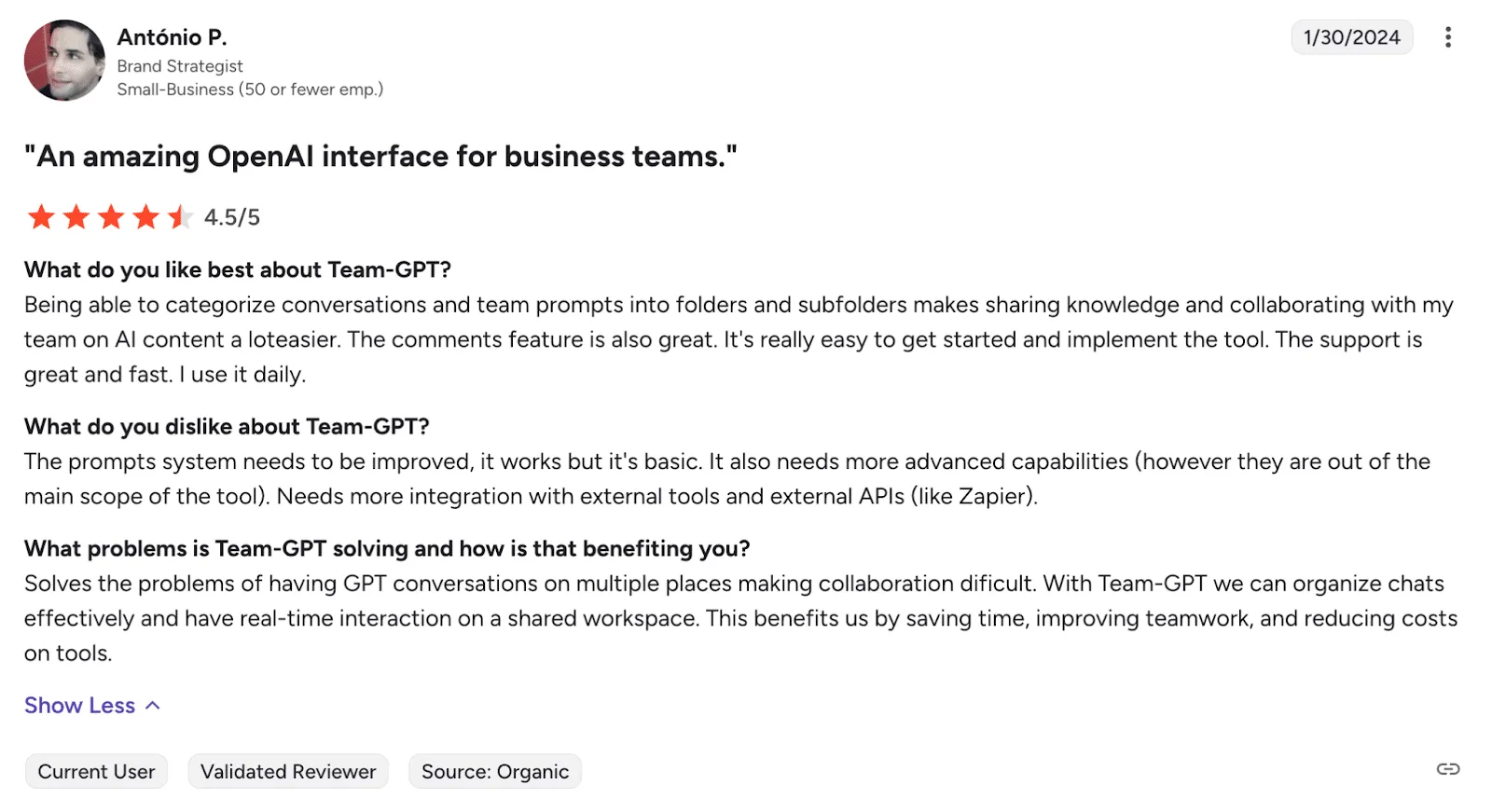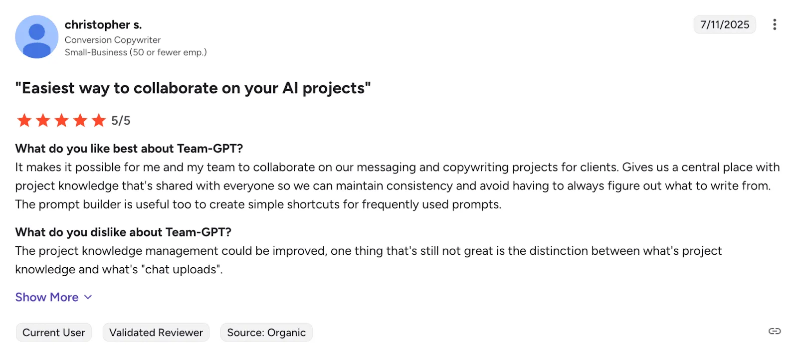 What are Customers Saying about Team-GPT vs ChatGPT Teams?