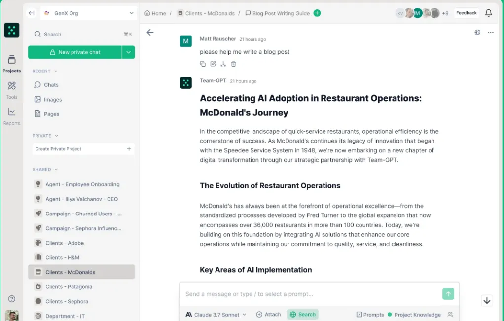 What makes Team-GPT different is that it isn’t just another AI tool - it’s a full collaborative workspace built around how marketing teams actually work.