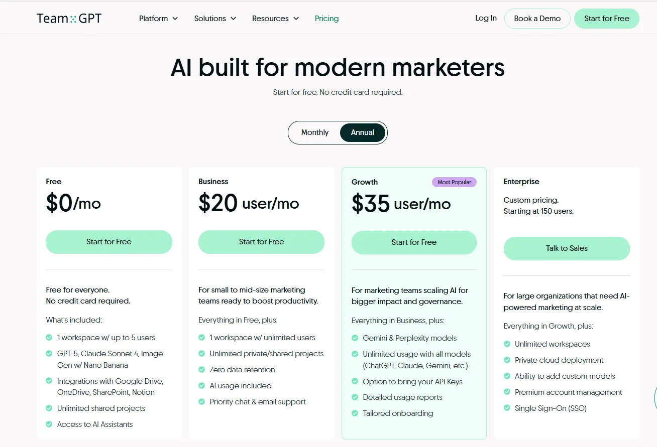 - Team-GPT offers multi-model flexibility, brand-trained AI assistants, and real-time team collaboration, making it the strongest choice for marketing teams that need to plan, create, and scale campaigns together.