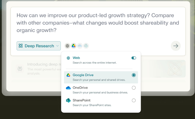 - Connectors to Google Drive, SharePoint, GitHub, Notion, and more.