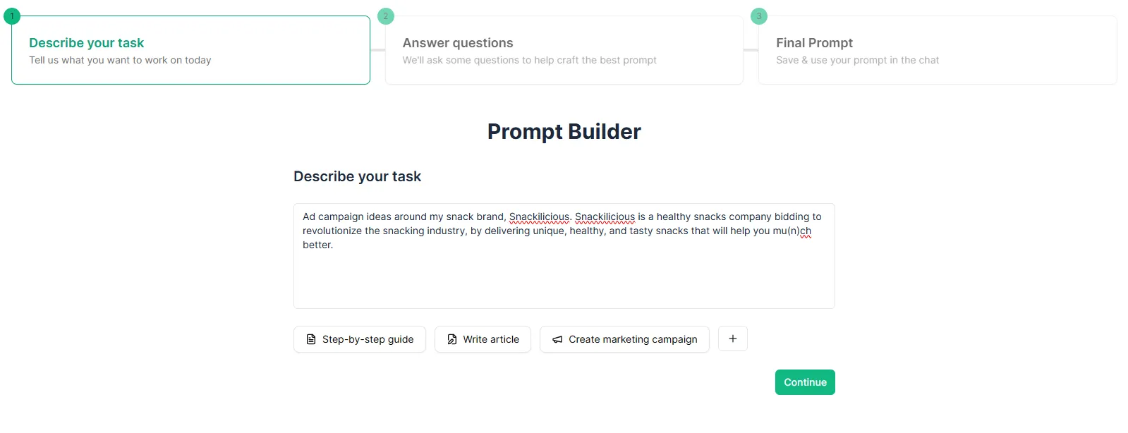 - You Can Build a Reusable Prompt Library: Save prompts for campaign planning, content writing, ad copy, or persona development. You can organize them per project, team, or objective.