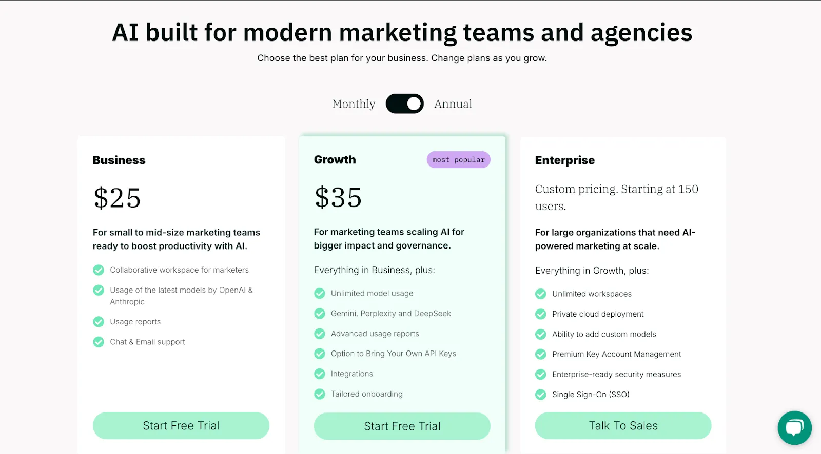 Team-GPT offers flexible plans designed to fit both small marketing teams and enterprise-scale organizations: