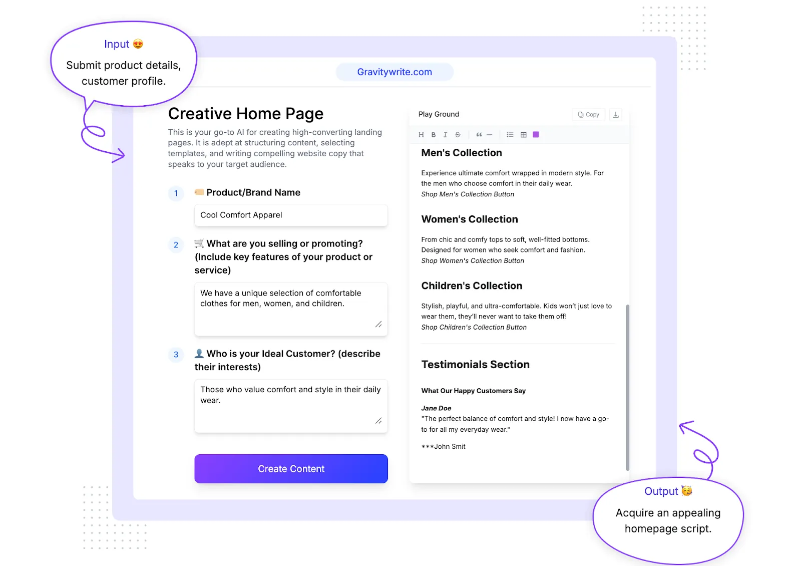 - Input Key Information: I start by providing details about my product or service, including the target audience and unique selling points (USPs).