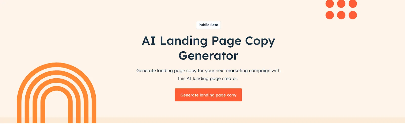 HubSpot’s AI Landing Page Copy Generator is a fantastic tool for quickly creating optimized, conversion-focused website copies. It uses AI to create tailored titles, subheadings, and body copy based on the details you provide, saving you time and helping you focus on the bigger picture of your marketing strategy.