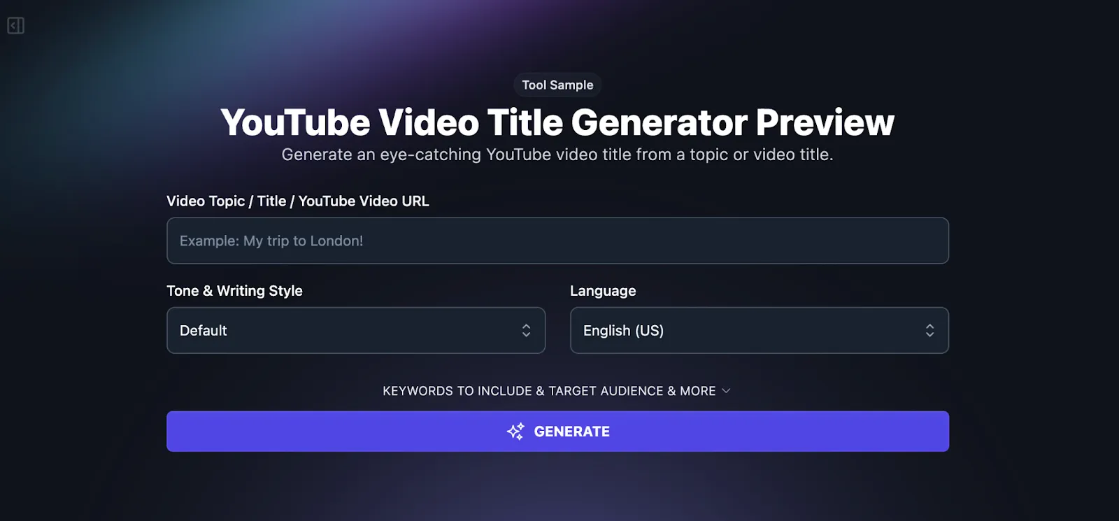 You want a tool that lets you do more than just type a single keyword. The best ones let you describe your video in full, include keywords, pick a tone, and even add a URL if you’re rewriting an existing title.