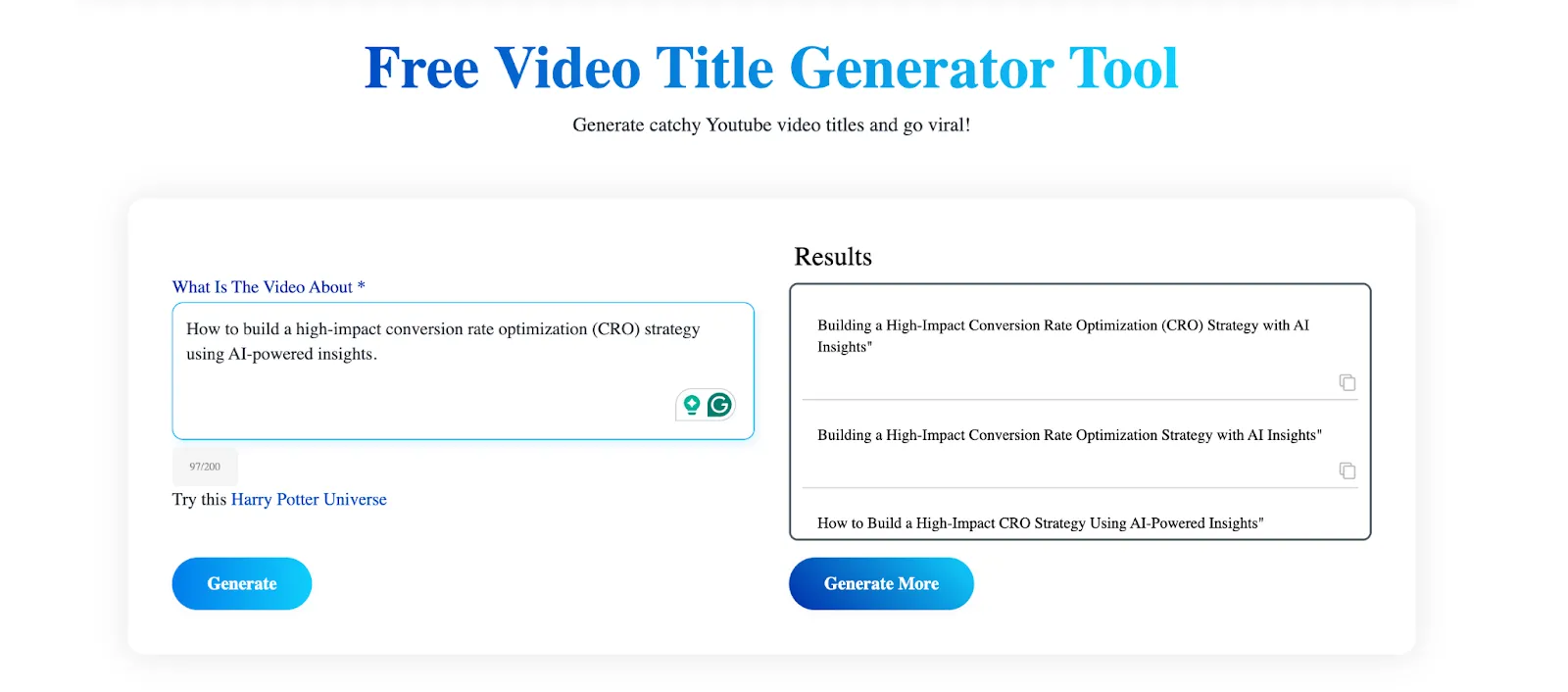 Best for: Content creators and marketers who want SEO-friendly YouTube titles in seconds.